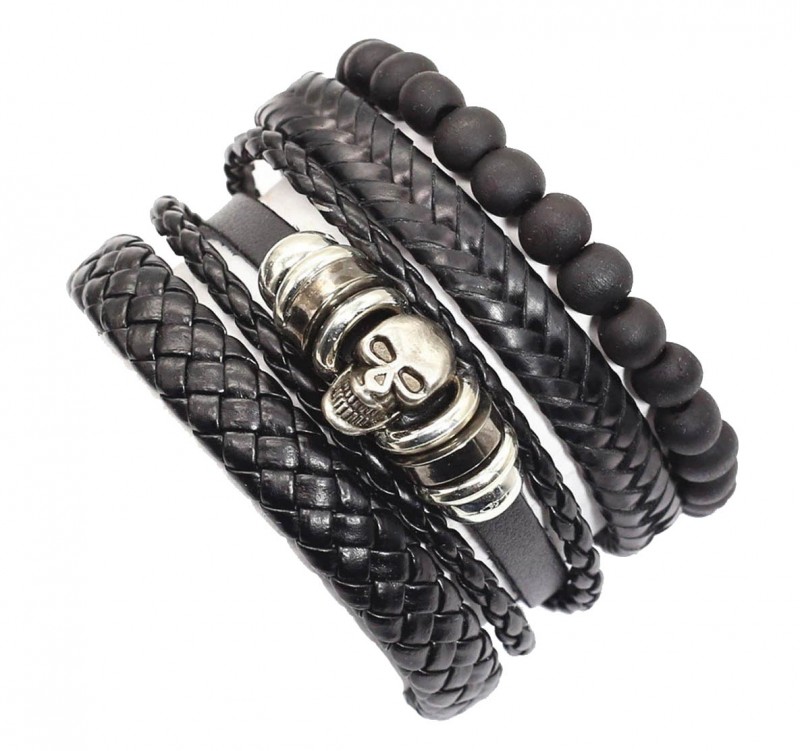 Браслет кожаный Gothic Skull 9471-01 черный